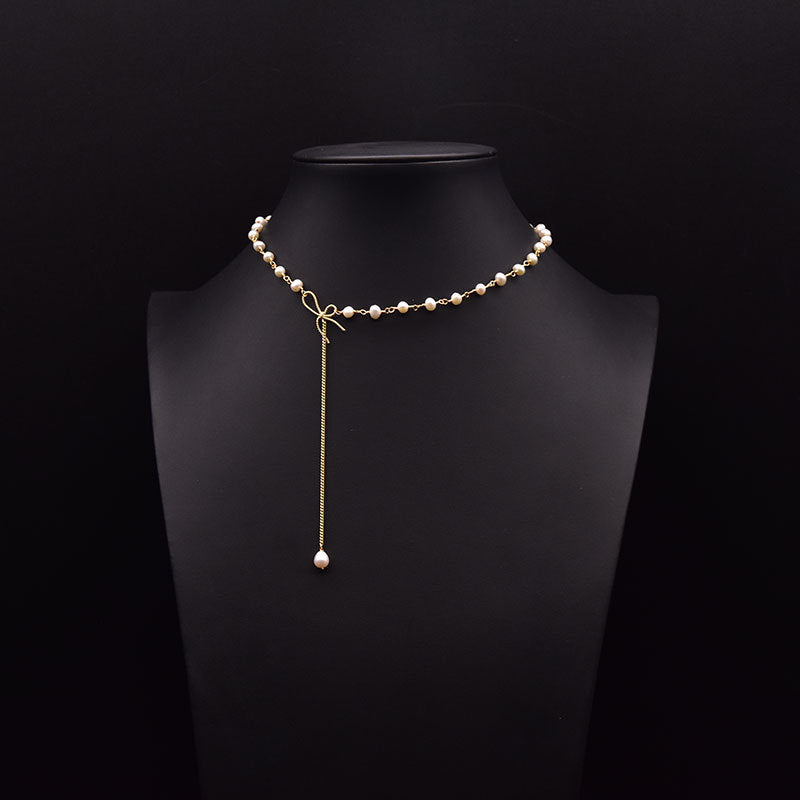 上品なベースに、一点の輝き,シンプルなチョーカーに、純白のパールが慎ましい主張をするモダンなデザイン。清楚な首筋を際立たせる,首元にぴたりとフィットするラインが、すっきりとした首筋を優雅に彩ります。