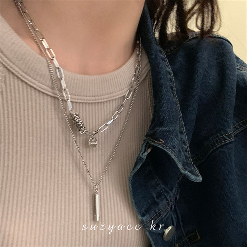 ダブルスタイル シルバー925 レイヤードペンダント - 自分流にカスタマイズできる、モードな輝き.