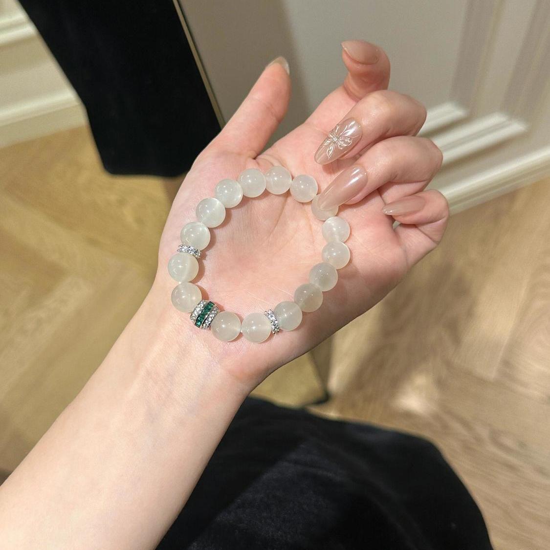 清らかな月光石と上質なヒスイが織りなす、上品で神秘的なブレスレット。