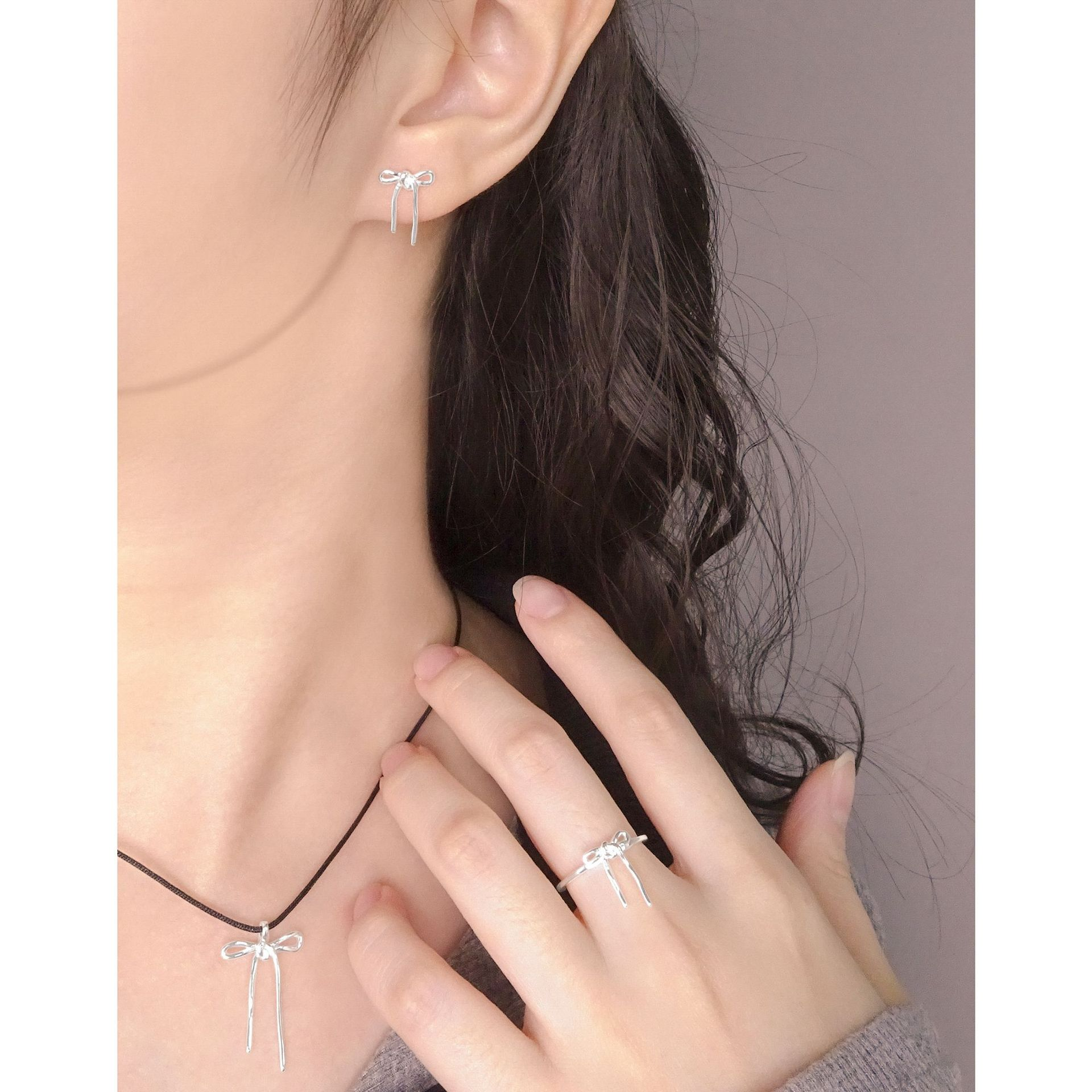 INSで人気のマイノリティ向けラグジュアリーデザインのライン状蝶々結びS925シルバーピアス