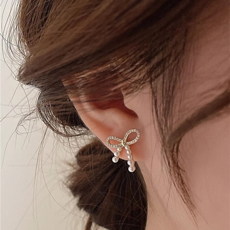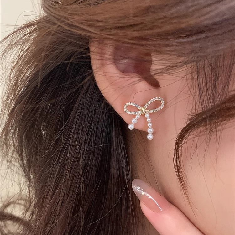 S925銀針ファッション真珠蝶結びピアス25年新作高級耳飾りイヤリング